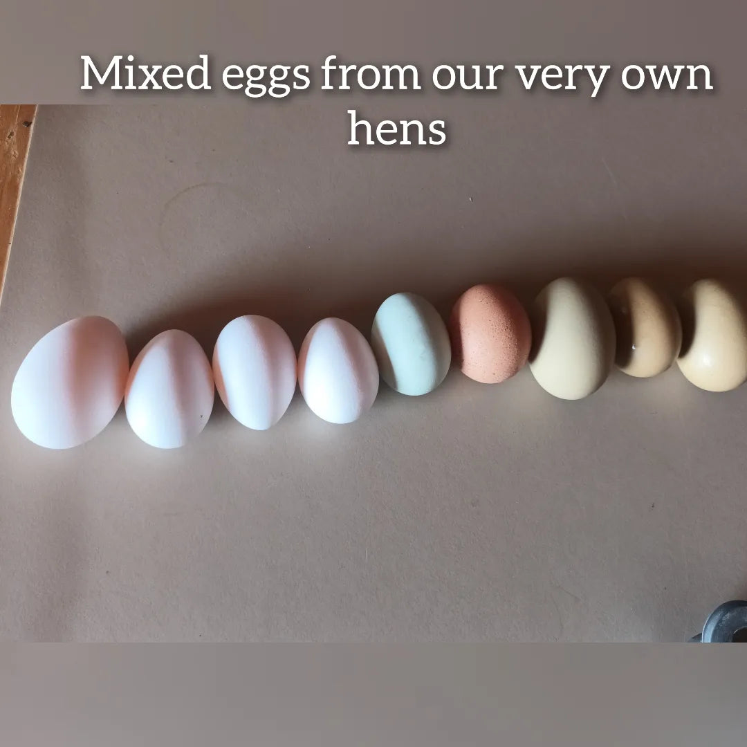 Delicious pasture raised eggs from our own, beautiful hens. Our girls have a 50m square area to roam around in, scratching up and prepping the ground for us. They are moved every few weeks to ensure fresh pasture for them, and prepared ground for us. This results in beautiful eggs and happy hens!