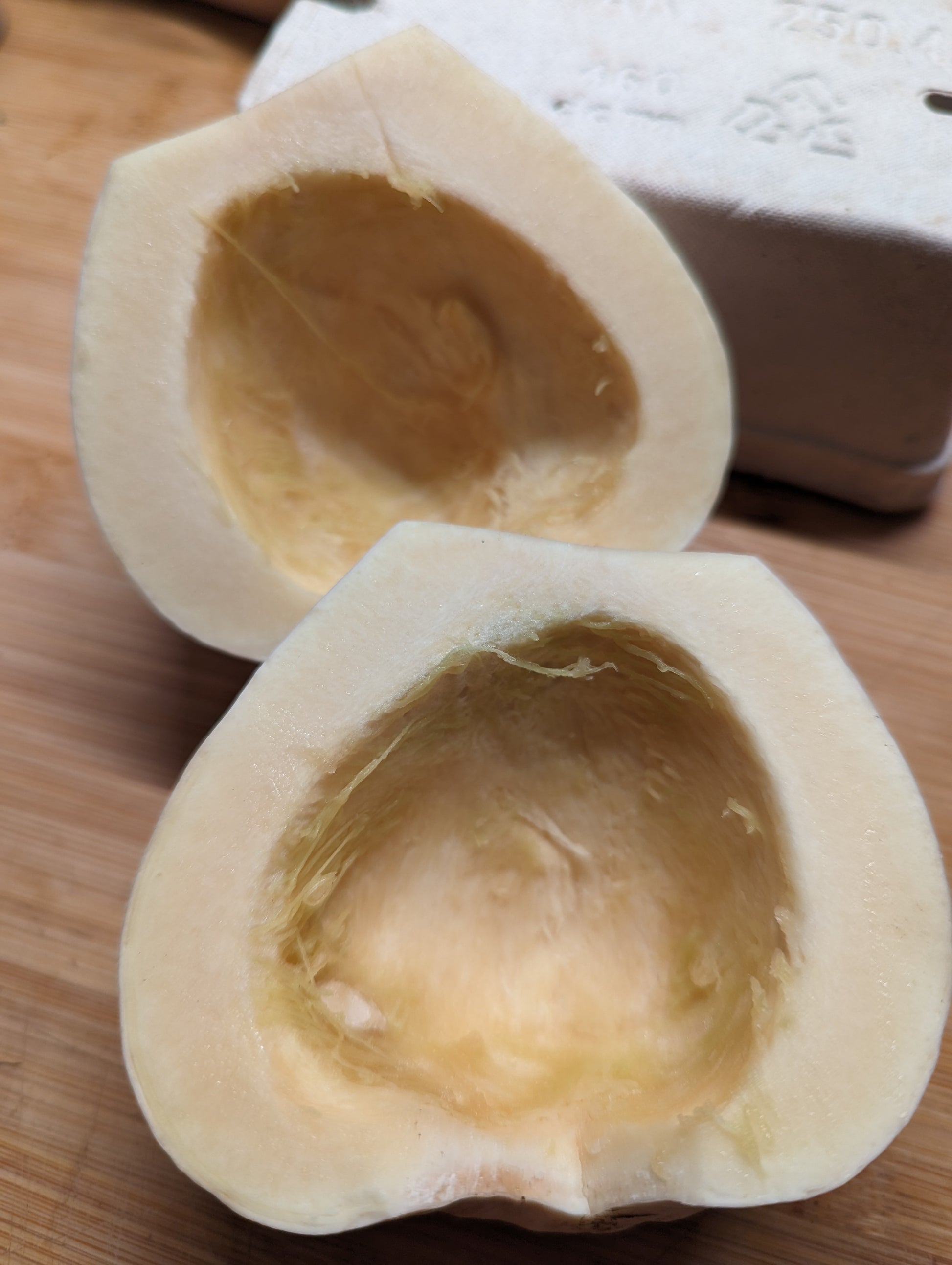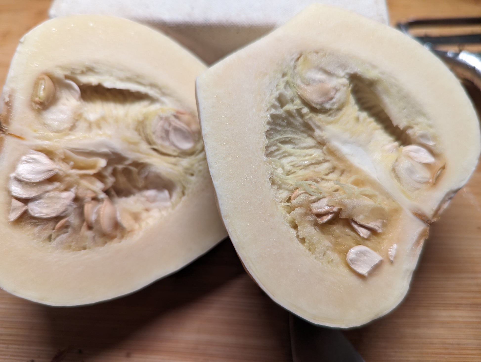 A variety of acorn squash, this white skinned, white flesh miniature pumpkin is fantastic for Halloween, but also delicious for eating.